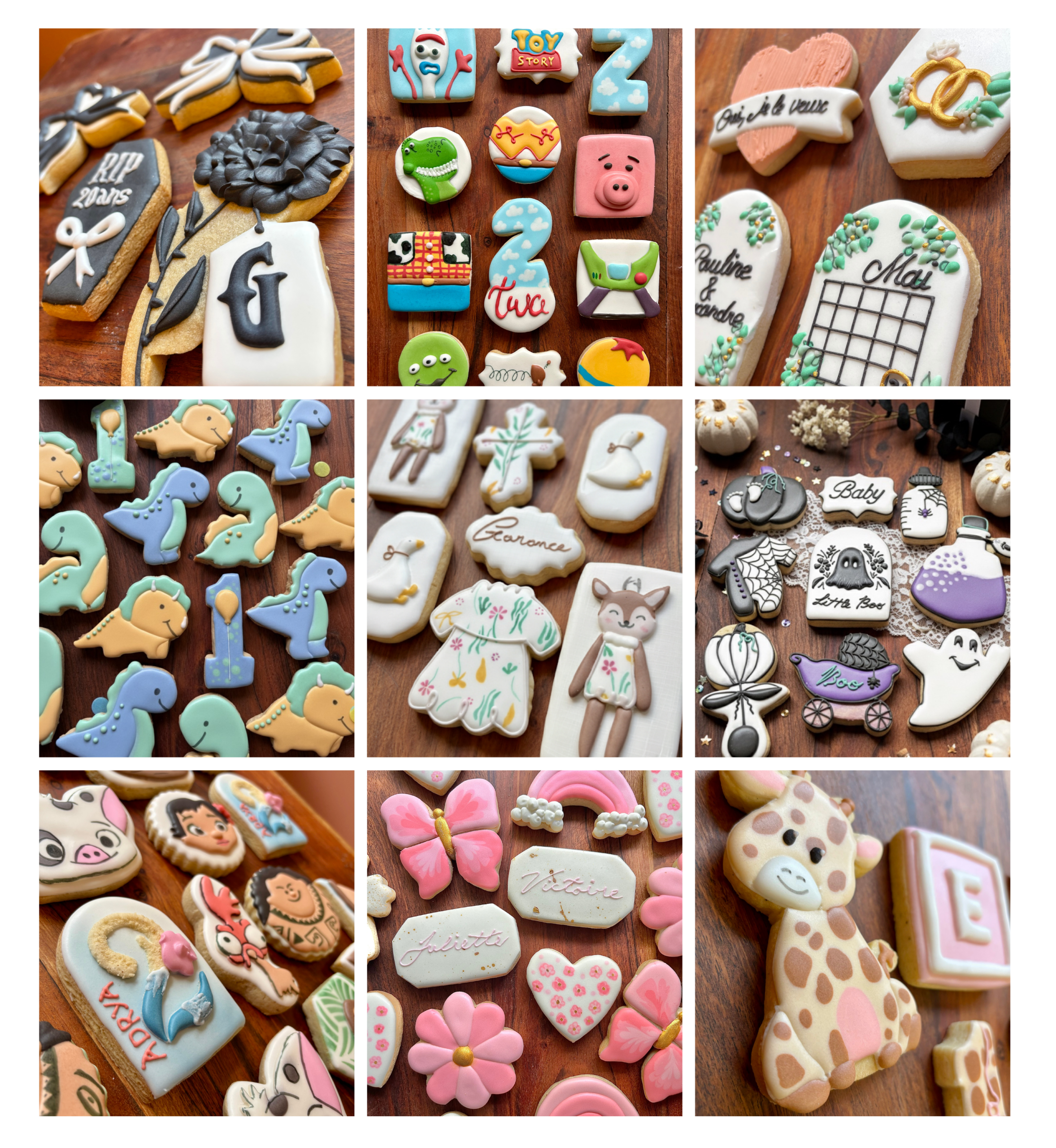 Chaque biscuit est décoré à la main au glaçage royal, avec patience et minutie. Aucun recours à la pâte à sucre : uniquement un décor fin, élégant et entièrement comestible.